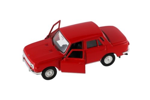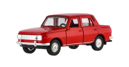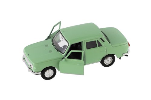Auto Wartburg 353 je vyrobené z kovových a plastových dílů. Auto má otevírací dveře. Baleno v papírové krabičce s fóliovým průhledem. Přišroubováno na papírovém podstavci s popisem typu. Rozměr auta: 12 cm Rozměr balení 15 x 7 x 6,5 cm Vhodné pro děti od 3 let