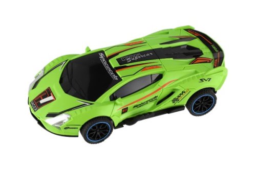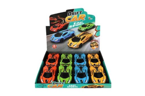 Závodní autíčko na setrvačník driftovací, tedy kontrolované smyky a klouzání bokem. Má speciální pneumatiky s nízkou trakcí a upravený podvozek pro lepší ovladatelnost při smycích. Rozměry výrobku 16 x 8 x 4 cm. Vhodné pro děti od 3 let.