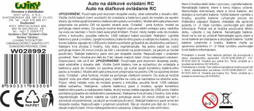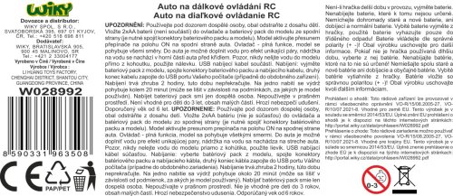 Auto závodní kouřící RC na dálkové ovládání. Rozměry 22x11x6,4 cm. Pistolový ovladač. Frekvence 27 MHz. Bateriový pack 3.7V 400mAh do auta součástí, 2xAA baterie do ovladač nejsou součástí. USB kabel součástí. Nabíjení 60 min, dosah 25 m. Nádržka na vodu v horní části auta před křídlem.