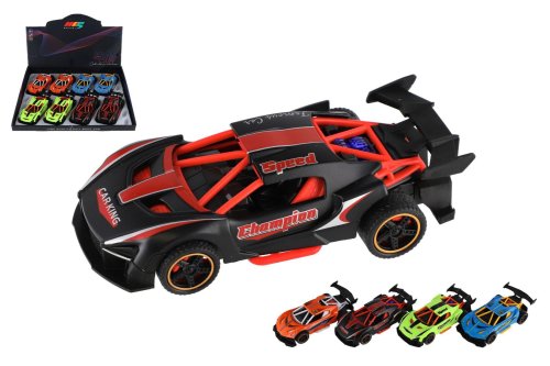 Připravit, pozor, start! Stylové závodní autíčko z kovu a plastu s funkcí zpětného natažení vyrazí vpřed jako blesk. Stačí natáhnout dozadu a pustit! Ideální pro malé závodníky doma i na cestách. Délka autíčka: 14 cm Vhodné pro děti od 3 let