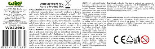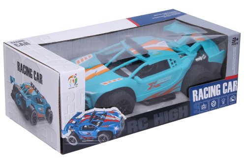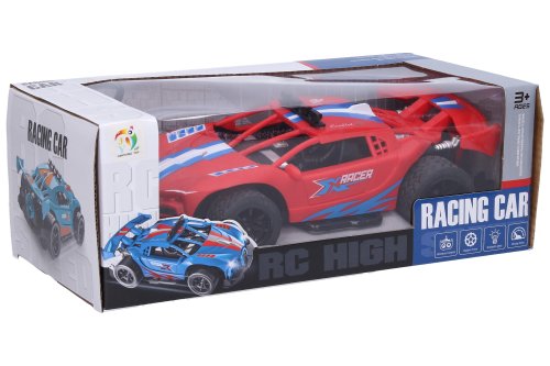 Auto závodní RC na dálkové ovládání. Rozměry 22,5x11x6,5 cm. Světelné efekty. 3xAA do auta +2xAA do ovladače, baterie nejsou součástí. 2 varianty - červená, modrá. Frekvence 40 MHz.