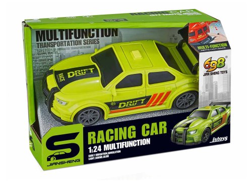 Auto závodní zelené s efekty. Velikost 16 cm. Volná kola. Světelné a zvukové efekty, aktivace tlačítkem na střeše. 3xAG13 baterie součástí.