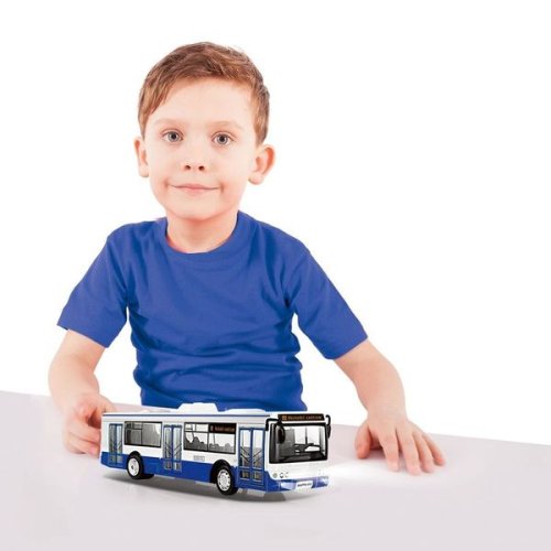 Plastový model autobusu MHD. Manuálním otevřením předních dveří začne česky hlásit zastávky (7 zastávek). Všechny dveře se zavírají pomocí tlačítka umístěného na střeše vozu. Po zavření dveří navíc blikají přední světla a vozidlo hlásí příští zastávku. Zadní kryt motoru lze otevřít, při otevření zazní reálný zvuk motoru spolu se světelným efektem. Obsahuje 3 ks baterií typu LR44/AG13, vložené baterie slouží jen pro demonstrativní účely. Rozměry balení 33 x 11 x 10 cm. Vhodné pro děti od 3 let.