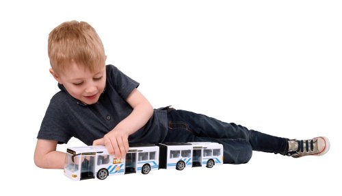 Autobus jezdí na setrvačník. Světelné a zvukové efekty.