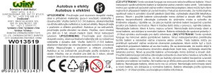 Autobus jezdí na setrvačník. Světelné a zvukové efekty. Efekty se aktivují 4 tlačítky na střeše autobusu.