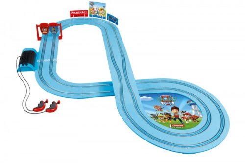Autodráha Carrera FIRST dlouhá 2,9 m s auty ze seriálu Paw Patrol, obsahuje rovinky, zúžení dráhy pro možné srážky, zatáčky, točící bránu, ovladače a dekorace s tématikou Paw Patrol, na baterie. Rozměr krabice: 114 x 88 cm Vhodné od 4 let