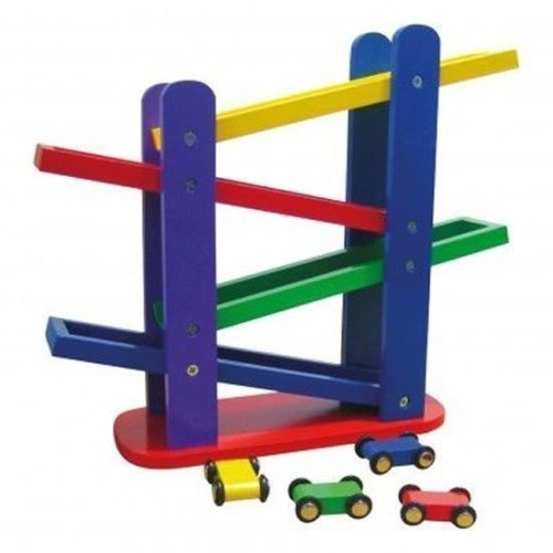 Dřevěná autodráha se čtyřmi barevnými autíčky, které díky překlopení snadno zdolávají kaskádu barevných silniček. Postavte autíčko na nejvyšší část autodráhy a sledujte co udělá! Zábavná hračka nejen pro kluky, kterou si děti zamilují.
