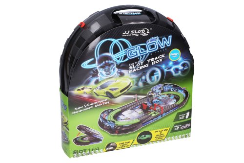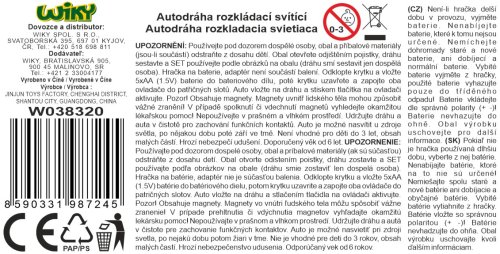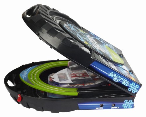 Autodráha rozkládací svítící. Rozměry 69x49,5x10,5 cm. 2 auta, 2 ovladače. 5xAA baterie nejsou součástí. Částečný obrázkový návod na použití na zadní straně obalu.