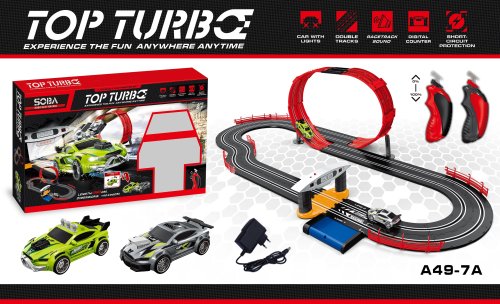 Vychutnej si jízdu plnou akce. Autodráha se smyčkou pro 2 auta ti dodá při každé jízdě dávku adrenalinu. Kdo bude v cíli první?
