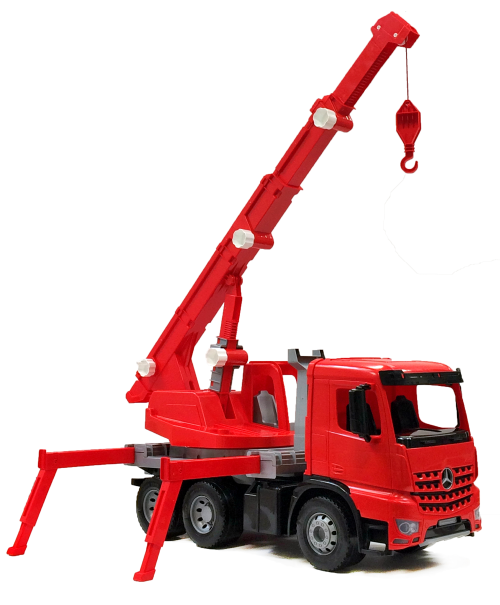 Plně mechanicky funkční Autojeřáb se 6 koly a licencí Mercedes o velikosti 70cm. S plně roztaženým ramenem dosahuje jeřáb velikosti až 115cm. Součásti jsou 4 boční výsuvné stabilizační nohy, které zabraňují aby se jeřáb nepřevážil na strany, klíny pomocí kterých lze zajistit kola proti pohybu dopředu nebo dozadu. Samotné rameno jeřábu lze otáčet o 270°. Vysouvání ramena a jeho zvedání je ovládáno pomocí obslužných koleček. Samotný jeřábový hák je obsluhován pomocí navijáku a lanka. Velikost 70x39x28cm. Vyrobeno v ČR.