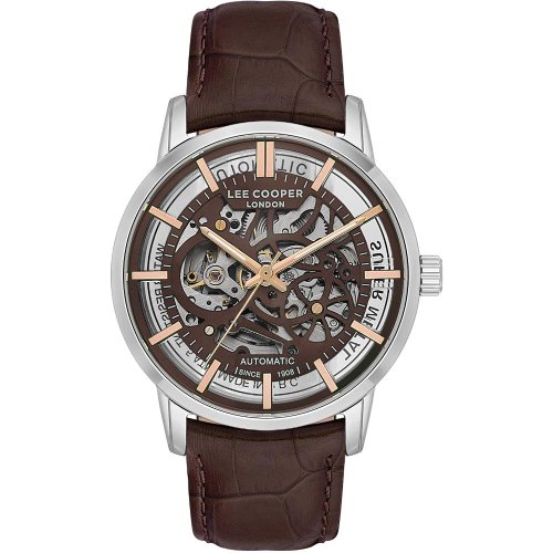 Pánské náramkové hodinky Automatický pohon Průměr pouzdra 44,0 mm Pouzdro ve tvaru kruhu Kovové pouzdro Kožený tah Ručičkový ciferník Ciferník s dvanácti indexy Materiál skla - minerální sklo Odolné proti vodě při běžném nošení