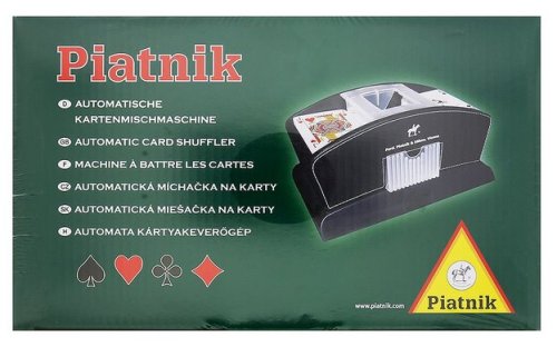 Automatická míchačka karet udělá vše za Vás. Míchačka je elektrická a během chvilky dokáže dokonale zamíchat karty. Pojme až dva balíčky karet. Karty nejsou míchány pravidelně ale náhodně.