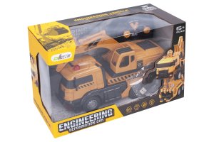 Autorobot RC na dálkové ovládání. Transformace na stavební auto- bagr. Velikost 29 cm. Pohyblivé rameno bagru, manuální pohyb. Pohyb do všech směrů, transformace tlačítkem. Součástí balení je nabíjecí USB kabel a šroubovák. Frekvence 40 MHz. Robot - 1x3.7V bateriový pack (součástí), ovladač - 2xAA (není součástí).