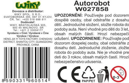 Autorobot kovový. Velikost 11 cm. 4 varianty - zelená, modrá, oranžová, šedá. Volná kola.