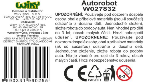 Autorobot kovový. Velikost 11 cm. Volná kola. 2 varianty - bílý, oranžový.