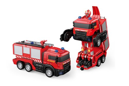 Autorobot RC na dálkové ovládání. Transformace na hasičské auto. Velikost 26 cm. Vodní dělo, aktivace stlačením majáku, nádržka na vodu v zadní části střechy. Pohyb do všech směrů, transformace tlačítkem. Frekvence 40 MHz. Robot - 1x3.7V bateriový pack (součástí), ovladač - 2xAA (není součástí). USB nabíjecí kabel v balení.