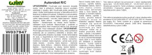 Autorobot RC na dálkové ovládání na ruku. Ovladač v podobě hodinek na ruku. Rozměry 22x10x8,5 cm. Frekvence 2.4GHz. Světelné a zvukové efekty. 3xAA baterie do auta nejsou součástí, 3xAG13 do ovladače jsou součástí. Ovladač - tlačítkový kříž - pohyb auta všemi směry, prostřední tlačítko - transformace v robota, levé boční tlačítko - odklopení krytu ovládacích hodinek. 2 varianty - červená, modrá.