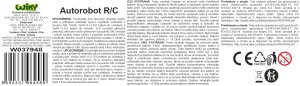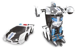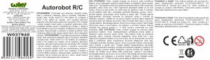 Autorobot RC na dálkové ovládání na ruku. Ovladač v podobě hodinek na ruku. Rozměry 24x10x8 cm. Frekvence 2.4GHz. Světelné a zvukové efekty. 3xAA baterie do auta nejsou součástí, 3xAG13 do ovladače jsou součástí. Ovladač - tlačítkový kříž - pohyb auta všemi směry, prostřední tlačítko - transformace v robota, levé boční tlačítko - odklopení krytu ovládacích hodinek.