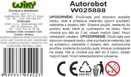Autorobot se zbraní. Velikost 14 cm. Volná kola. 4 varianty - zelená, modrá, žlutá, oranžová.
