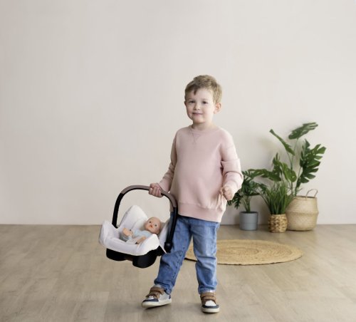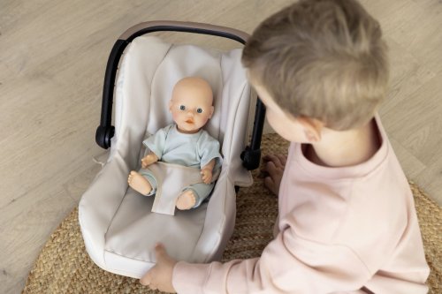 Autosedačka s rukojetí v originálním designu Maxi-Cosi s béžovým látkovým potahem a bezpečnostním pásem. S úložným prostorem na zadní straně sedadla. Lze nasadit na podvozek kočárku (není součástí). Vhodné pro panenky do velikosti 42 cm. Rozměry produktu (DxŠxV): 47 x 32 x 35 cm.