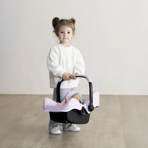 Autosedačka s rukojetí v originálním designu Maxi-Cosi se světlě růžovým látkovým potahem a bezpečnostním pásem. S úložným prostorem na zadní straně sedadla. Lze nasadit na podvozek kočárku (není součástí). Vhodné pro panenky do velikosti 42 cm. Rozměry produktu (DxŠxV): 47 x 32 x 35 cm.