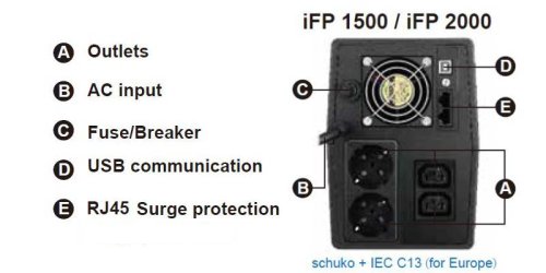 Výstupní přípojky: 2x Schuko, 2x IEC C13