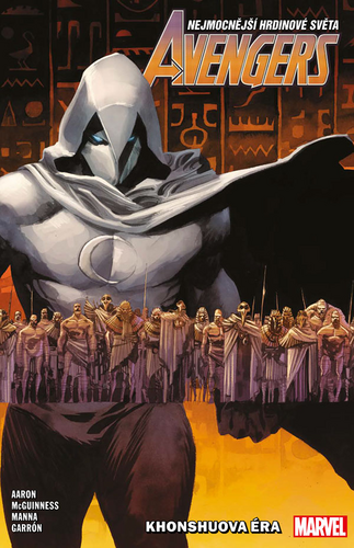 OD ÚSVITU DĚJIN... PO KONEC SVĚTA? Tony Stark, uvězněný v ledové jeskyni v hluboké minulosti, přišel o většinu své zbroje a taky o část rozumu. Až slunce dnes večer zapadne a opět přijde ďábel, ztratí Iron Man zbytek svojí duše? V přítomnosti se mezitím nejmocnější zloduchové země sjednocují proti společné hrozbě: Avengers! Zatímco však tým čelí povstání padouchů, jaké svět ještě nezažil, zaútočí na něj jeden z jejich spojenců! Mumie vstávají z hrobů. Tajné armády pochodují v měsíčním světle od K’un-lunu přes Wakandu až po Greenwich Village. Temný bůh zaútočí na Asgard. A Moon Knight se zcela vymyká kontrole! A tak započíná Khonshuova éra. A pád Avengers. Obsahuje sešity AVENGERS (2018) č. 31–38 autorů Jasona Aarona, Eda McGuinnesse, Francesca Manny, Javiera Garróna, Gerarda Zaffina, Geralda Borgese, Szymona Kudranskiho, Jana Bazalduy, Roberta Gilla, Mattii de Iulise, Marka Moralese, Jasona Keitha a Rachelle Rosenbergové.