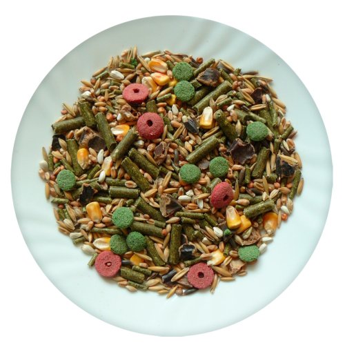 Složení: Vojtěška, pšenice, oves, extrudované obiloviny, ječmen, kukuřice, čirok červený, ječné vločky, hrachové vločky, svatojánský chléb, slunečnice žíhaná.