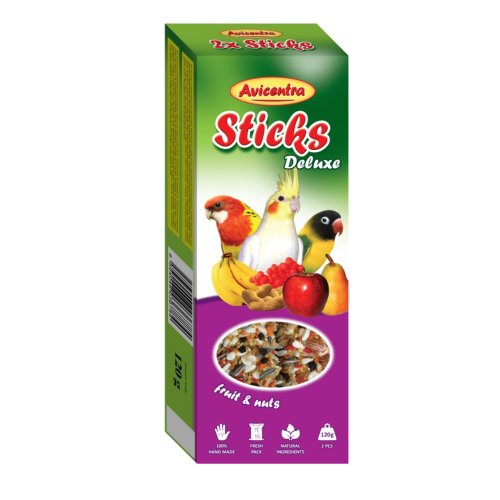 Avicentra Deluxe tyčinky pro malé papoušky s ovocem a ořechy jsou chutnou pochoutkou, která zpestří jídelníček malých papoušků a zároveň jim poskytne přirozenou zábavu. Kombinace pečlivě vybraných semen, ovoce a ořechů vytváří vyváženou a velmi lákavou odměnu, kterou ptáci rádi zobou.
