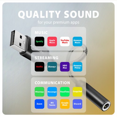 AXAGON ADA-HA Hi-Res DAC AUDIO ADAPTER je praktickým doplňkem pro notebook nebo stolní počítač s USB-A konektorem, který poskytne kvalitnější zvuk než vestavěný audio konektor. Adaptér funguje jako externí USB zvuková karta s DAC převodníkem podporujícím Hi-Res Audio se vzorkováním až 384 kHz / 32 bitů, což zajišťuje čistý a detailní zvuk. Tento adaptér je ideálním řešením pro notebooky vybavené sluchátkovým konektorem s průměrnou kvalitou zvuku nebo pro zařízení, kde zvuková karta chybí či nefunguje. Integrovaný USB DAC převodník zlepšuje kvalitu zvuku při poslechu hudby, sledování filmů i online hovorech. Tato externí zvuková karta je vhodná pro přehrávání bezztrátových audio formátů jako DSD, FLAC, WMA, WAV, APE, AAC nebo ALAC. Maximální kvalitu zvuku využijete také při poslechu hudby na streamovacích platformách jako Spotify, Apple Music, YouTube Music nebo Amazon Music Unlimited. Adaptér lze využít i při sledování streamovacích služeb jako Netflix, Disney+, HBO Max, Amazon Prime nebo Apple TV+. Dobře poslouží také jako náhrada nefunkční původní zvukové karty v notebooku a rozšíří počítač o sluchátkový výstup a mikrofonní vstup. Lze tak snadno připojit sluchátka, headset nebo aktivní reproduktory a využít jej i pro komunikační služby jako WhatsApp, Messenger, FaceTime, Zoom, MS Teams, Google Meet nebo Discord. Pro připojení sluchátek slouží stereofonní 3.5 mm 4pólový TRRS jack konektor s automatickou detekcí standardů CTIA nebo OMTP. Pevnost 10 cm dlouhého kabelu zajišťuje odolné nylonové opletení. Instalace je velmi snadná díky Plug and Play, takže není nutné instalovat žádné ovladače. Adaptér podporuje také Hot Plug, takže jej lze připojit i za chodu.