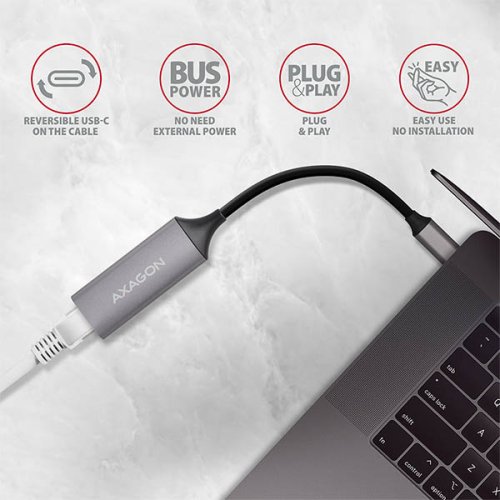 Kompaktní hliníkový vysokorychlostní adaptér snadno přemění port USB typu C na Gigabit Ethernet port. Nabízí širokou škálu funkcí např. IPv4/IPv6 checksum pro snížení zátěže CPU kontrolními součty, crossover detekci a autokorekci, TCP large send offload, podporu různých módů Wake-on-LAN funkce, práce s VLAN nebo pokročilé funkce Power Managementu.