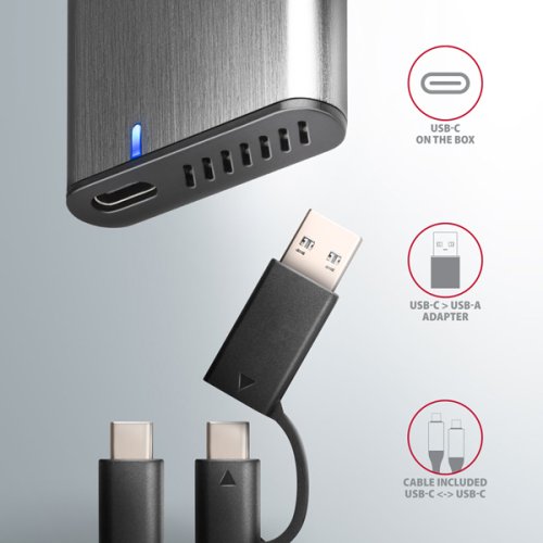 Vstup: • USB 3.2 Gen 2 (USB 3.1 Gen 2) SuperSpeed USB 10 Gbps. • Rychlost až 10 Gbit/s. • Připojení přes reverzibilní USB type C female konektor.