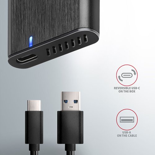 Vstup: • USB 3.2 Gen 2 (USB 3.1 Gen 2) SuperSpeed USB 10 Gbps. • Rychlost až 10 Gbit/s. • Připojení přes reverzibilní USB type C female konektor.