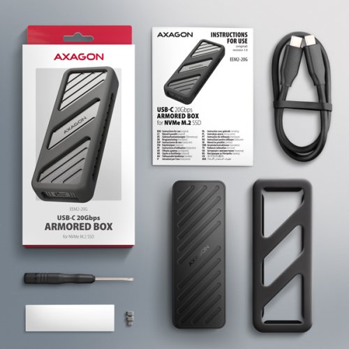 AXAGON externí ARMORED box pro M.2 NVMe SSD / EEM2-20G / USB-C / USB 3.2 Gen2 / až 20 Gbit/s / kabel 38cm
