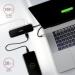 Dokovací stanice v hliníkovém provedení nabízí velké množství praktických portů. K počítači či notebooku se připojuje pomocí konektoru USB-C, který slouží k přenosu dat rychlostí až 5 Gb/s. K dokovací stanici lze skrze rozhraní HDMI připojit monitor s rozlišením až 4K při 30 Hz. Pro připojení periférií jsou přítomny tři USB 3.0 porty. Stanice taktéž nabízí USB-C Power Delivery až 60 W, který je určen pro napájení připojeného notebooku či tabletu pomocí vašeho originálního síťového adaptéru. Vysokorychlostní přístup k síti a internetu lze realizovat skrze přítomný gigabitový RJ-45 port.
