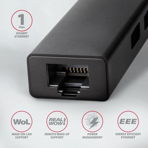 Kompaktní rozbočovač s odolným hliníkovým pláštěm připojí k počítači s rozhraním USB-C až tři USB zařízení současně. Navíc přidá také gigabitovou síťovou kartu, která připojí váš počítač k vysokorychlostní síti.
