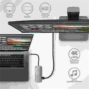 HDMI výstup poskytuje kvalitní obraz až do rozlišení 4K/30Hz Ultra HD a podporuje přenos vícekanálového zvuku. Pro správné fungování video výstupu je nutné, aby notebook měl USB-C port s podporou DisplayPort Alternate Mode (DP Alt Mode) nebo port Thunderbolt 3.