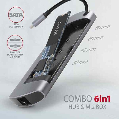 AXAGON HMC-6M2 COMBO 6in1 USB-C 3.2 Gen 1 Multiport Hub
