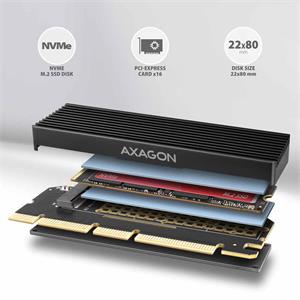 Adaptér je vybaven žebrovaným hliníkovým krytem disku, který slouží jako pasivní chladič. Díky velké chladící ploše a dodávaným teplovodivým podložkám, chladič odvádí teplo z obou stran M.2 disku a dosahuje tak maximální efektivity chlazení. Je tak ideální i pro náročné PCIe 5.0 NVMe SSD disky.