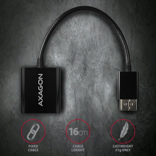DisplayPort -- VGA aktivní adaptér AXAGON RVD-VGN pro připojení staršího VGA monitoru/TV/projektoru k počítači nebo jinému zařízení s výstupem Display Port.