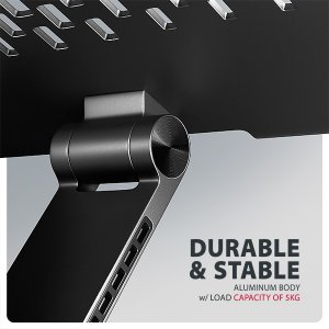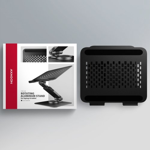 AXAGON STND-LRB je stojan s 360° rotací, dvojitým kloubem a výsuvným ramenem, který zajišťuje maximální pohodlí a výrazně zlepšuje ergonomii při práci s notebookem nebo tabletem. Je určený pro zařízení od 10" do 17.3", umožňuje nastavit ideální výšku a úhel pro uvolnění krčních a zádových svalů. Díky 360° mechanismu a výsuvnému ramenu se dokonale přizpůsobí vašim potřebám ať už pracujete doma, v kanceláři, nebo na cestách. Kompaktní a přenosný design stojanu vám zajistí komfortní pracovní prostředí kdekoliv. 360° mechanismus umožňuje otočení celého ramene s notebookem okolo své osy. Tato funkce zajišťuje maximální flexibilitu – snadno změníte orientaci notebooku, aniž byste museli stojan přemisťovat. To oceníte zejména při práci v omezených prostorech, nebo při sdílení obrazovky notebooku při obchodních jednáních, poradách nebo prezentacích. Unikátní funkcí je výsuvné rameno s pojistkou proti uvolnění, které umožňuje jeho prodloužení až o 6 cm díky sedmi nastavitelným pozicím. Tímto způsobem snadno nastavíte notebook do optimální výšky a vzdálenosti od vašich očí přesně podle vašich potřeb. Chytré řešení s dvojitým kloubem poskytuje plynulé nastavení výšky obrazovky tak, aby byla v jedné rovině s vaším externím monitorem. Tím získáte další pracovní plochu ve správné úrovni očí, což výrazně zlepšuje ergonomii, zvyšuje pohodlí a zároveň podporuje vaši produktivitu. Podstavec pro notebook je vyroben z robustních hliníkových odlitků garantujících dlouhou životnost a spolehlivost. Díky protiskluzové úpravě zůstane vaše zařízení bezpečně na svém místě bez rizika nechtěných pohybů, aniž by došlo k jakémukoliv poškození povrchu notebooku nebo podložky. Tyto pečlivě navržené vlastnosti zaručují perfektní stabilitu pro váš notebook, tablet nebo oblíbenou knihu, což vám poskytne klid a pohodlí při každodenním používání. Stojan lze snadno složit do kompaktních rozměrů, což umožňuje pohodlné přenášení kamkoli potřebujete. Jeho elegantní design v černé barvě stylově doplní váš pracovní stůl. Větrací otvory v podložce zajišťují optimální odvod tepla z vašeho notebooku, čímž zvyšují jeho výkon a životnost.