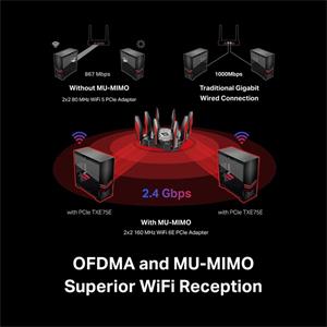 Archer TXE75E posune příjem Wi-Fi signálu vašeho počítače na novou úroveň, protože revolučně využívá kombinaci technologií OFDMA a MU-MIMO. Wi-Fi připojení počítače díky tomu může fungovat efektivněji, neboť větší počet zařízení může komunikovat s routerem současně, bez čekání na přenos dat ve frontě.