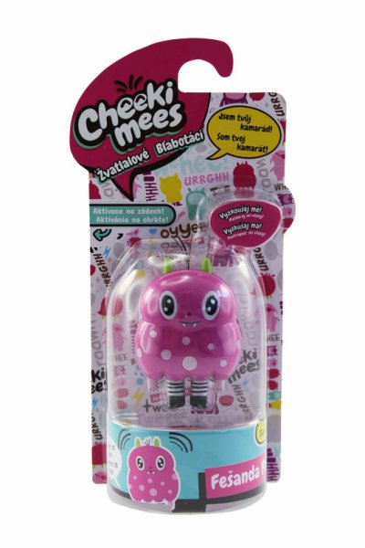 Vyber si z kolektivní řady roztomilých Cheeki mees svého žvatlavého kamaráda Rošťáka Huga, fešandu Patty, drsňáka Rendyho, rebelku Becky, bručouna Dannyho nebo showmana Bobbyho. Každý z nich je originální. Roztomilí Cheeki mees žvatlavové jsou nejlepšími kamarády pro tebe. Žvatlají spoustu roztomilých věcí. Pokud se nudí, rychle usnou, když je pošimráš po vlasech, opět se probudí. Pokud jim spojíš navzájem vlasy, začnou si spolu povídat. Nasbírej celou řadu Cheeki mees žvatlalů a vyzkoušej každého z nich.