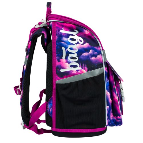 • Uvnitř aktovky je průhledná kapsa na rozvrh a vnitřní organizér umožňující rovnoměrné rozložení hmotnosti, doplněný gumičkou pro fixaci.