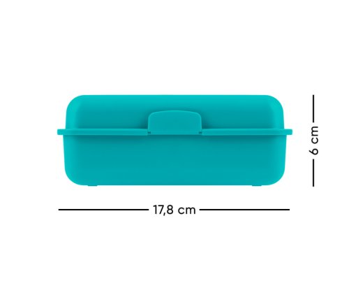 • Plastový box na svačinu. • Box má uzavírání na jeden zámek a obsahuje dělicí přepážku. • Nedoporučujeme mýt v myčce