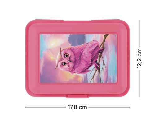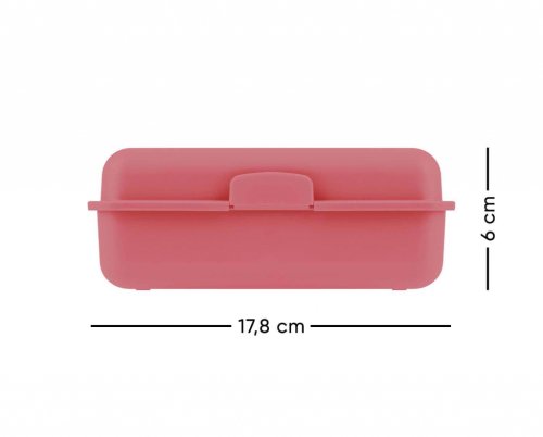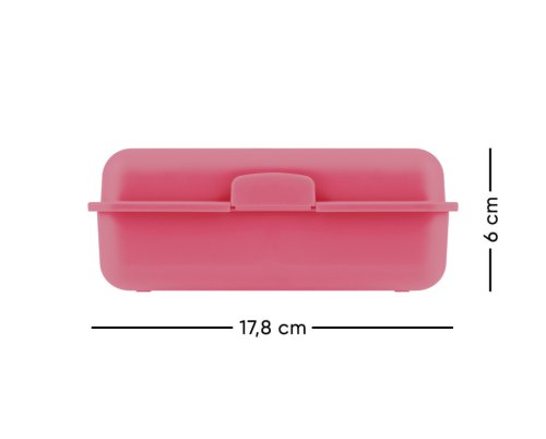 • Plastový box na svačinu v růžové barvě.
