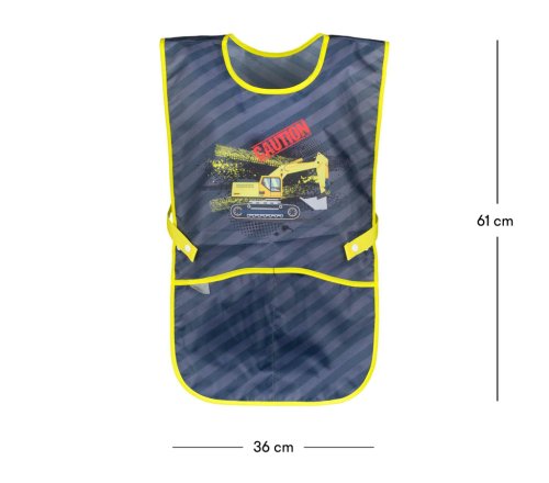 • Dětská zástěra na výtvarnou výchovu, pracovní činnosti a další kroužky. • V dolní části zástěry jsou dvě kapsy. • Vyrobeno z omyvatelného materiálu.