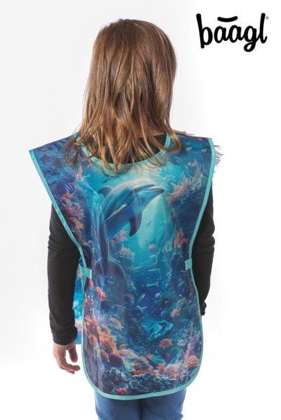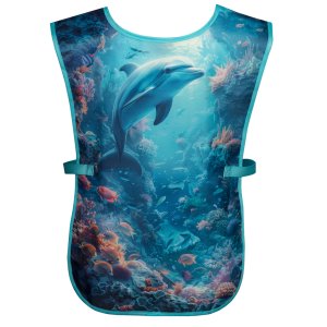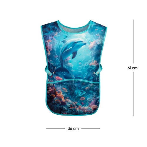 • Dětská zástěra na výtvarnou výchovu, pracovní činnosti a další kroužky. • V dolní části zástěry jsou dvě kapsy. • Vyrobeno z omyvatelného materiálu.
