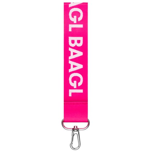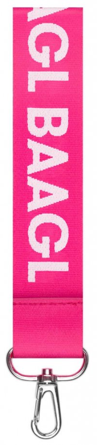 Textilní přívěsek na klíče s karabinou v růžové barvě.