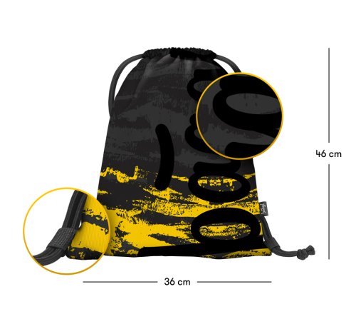 • Sáček na obuv či jiné drobnosti pro vaše volnočasové aktivity. • Sáček je vyroben z pevného omyvatelného materiálu. • Zdrhování pomocí pevných tkanic, které zároveň umožňují nošení na zádech.
